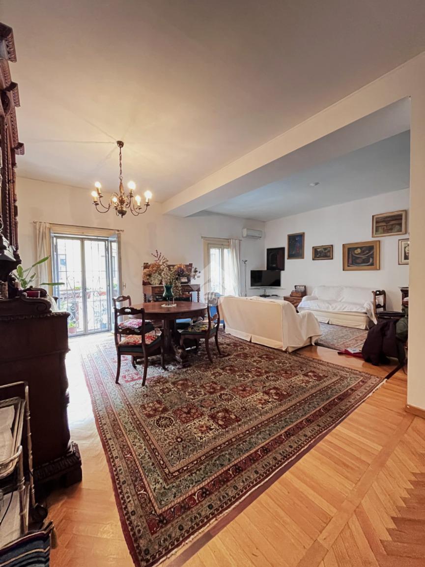 L'appartamento è situato al primo piano di quattro, internamente è composto da un ampio disimpegno d'ingresso che conduce ad un luminoso salone doppio, una cucina abitabile separata completamente arredata, due spaziose camere da letto, di cui una padronale.