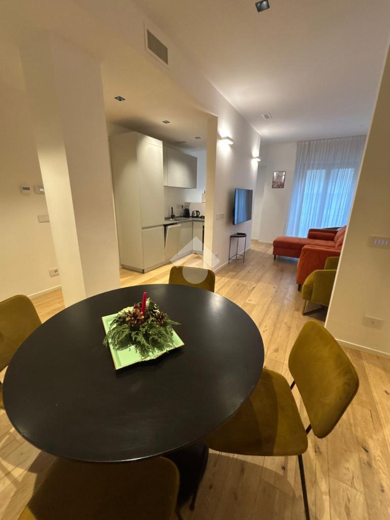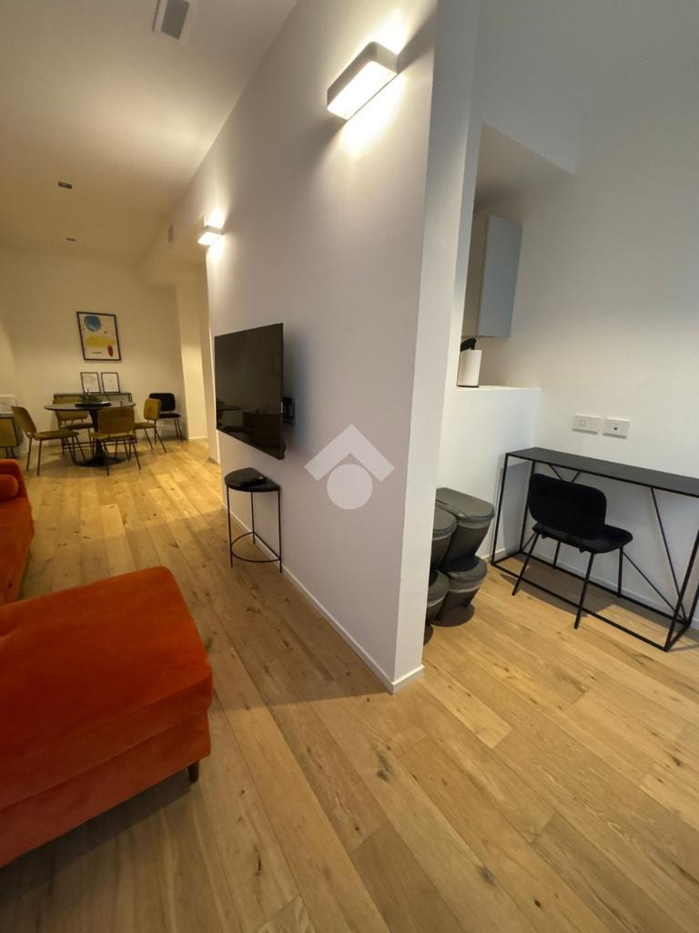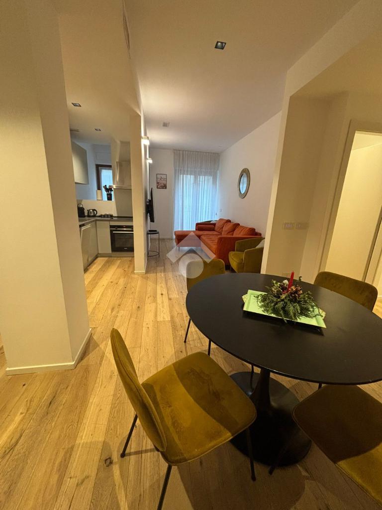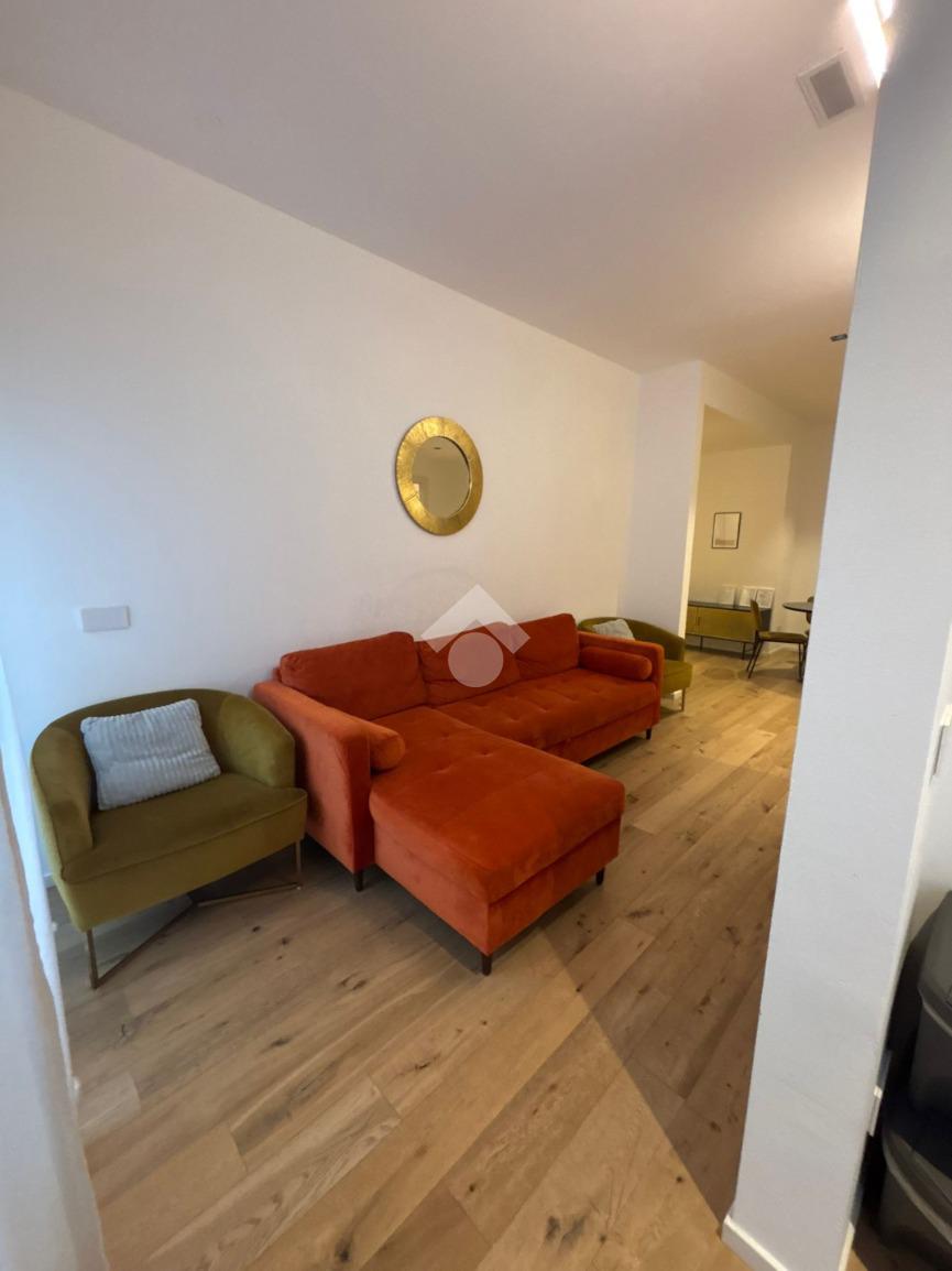 L’appartamento, si presenta ristrutturato, arredato e colpisce fin da subito per la disposizione degli spazi.
