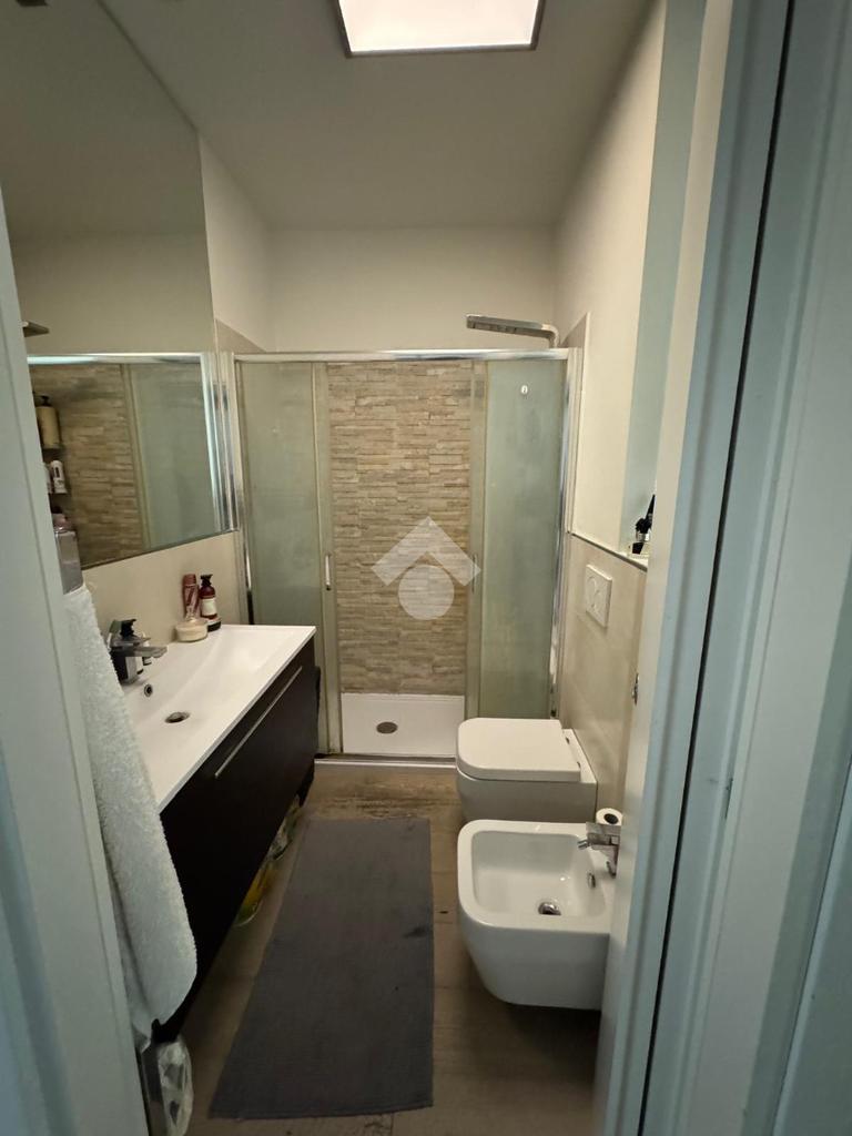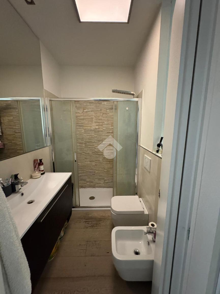 Il bagno ristrutturato completo e funzionale, è dotato di sanitari di ultima generazione, ampio piatto doccia, organizzato per offrire praticità.