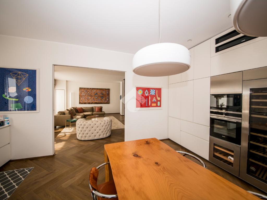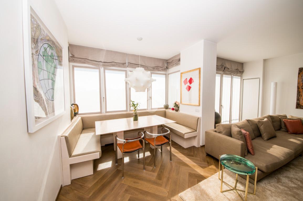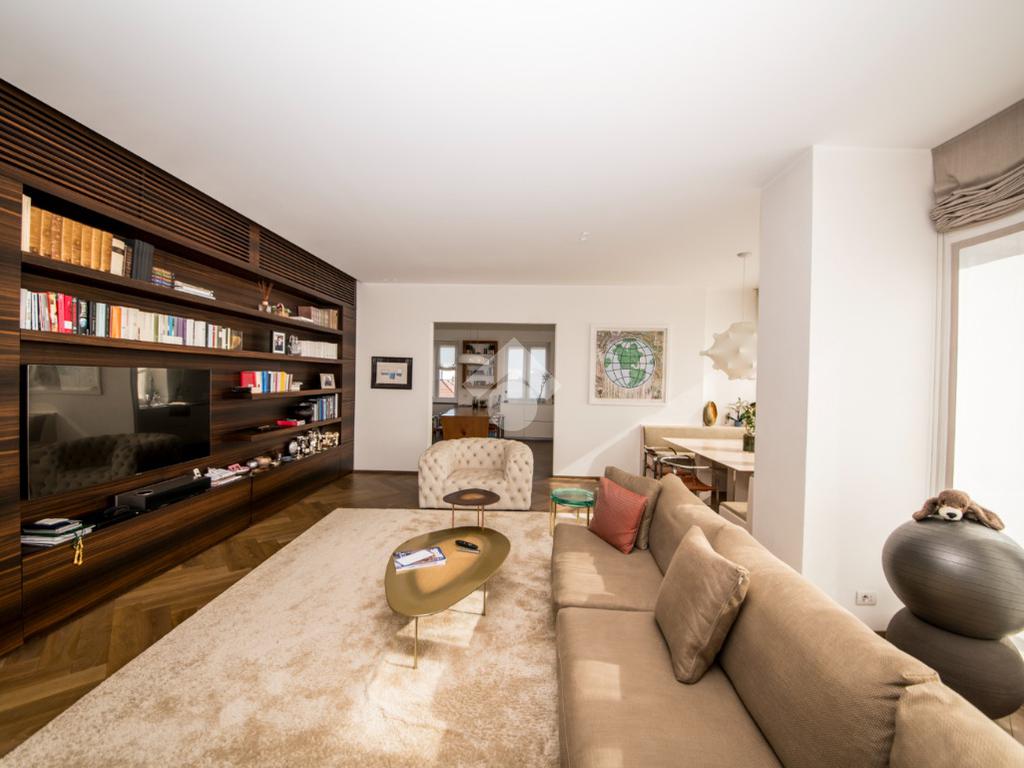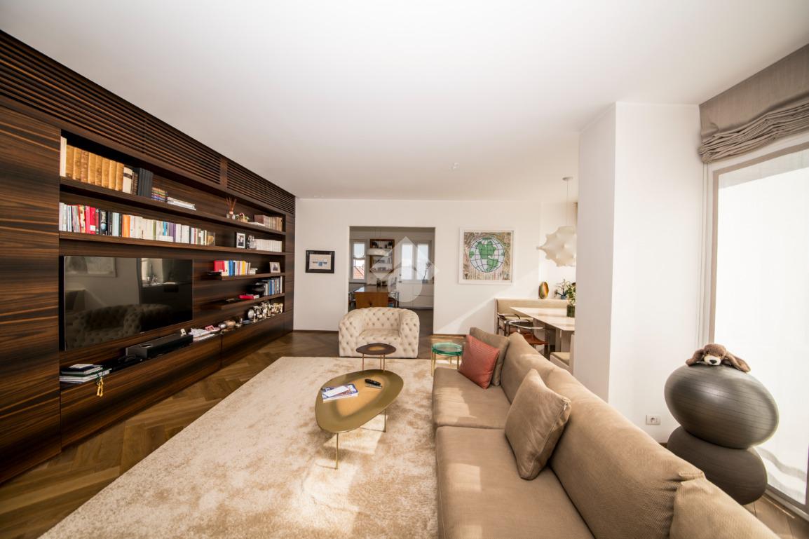 L’appartamento, di 220 mq, è una dimora di rara bellezza, completamente ristrutturata e finemente arredata con materiali e finiture di altissimo livello.